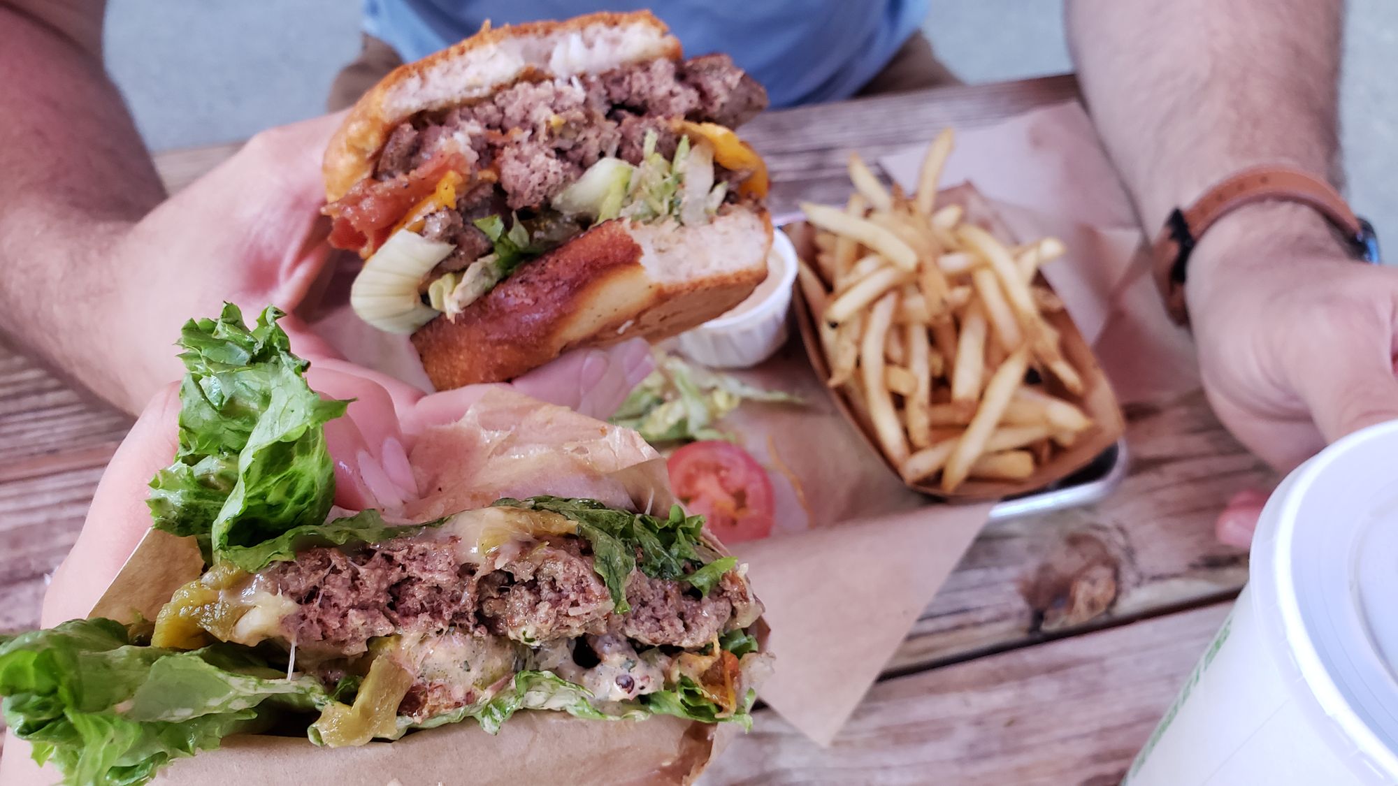 My food recommendations: the lettuce-wrapped Green Chile Jack Burger and sweet potato fries. Andrew raved about his double bacon cheeseburger, as well.