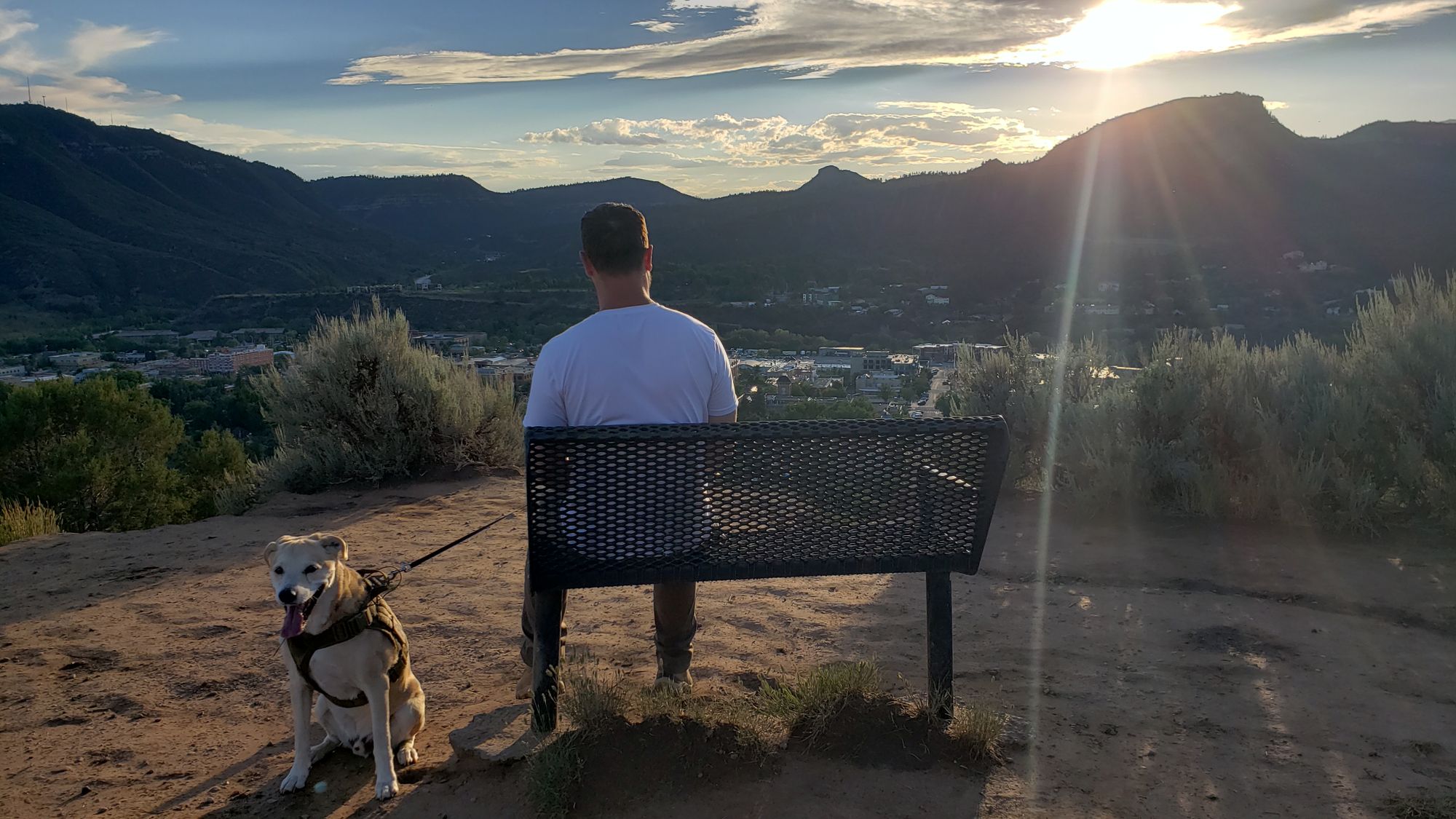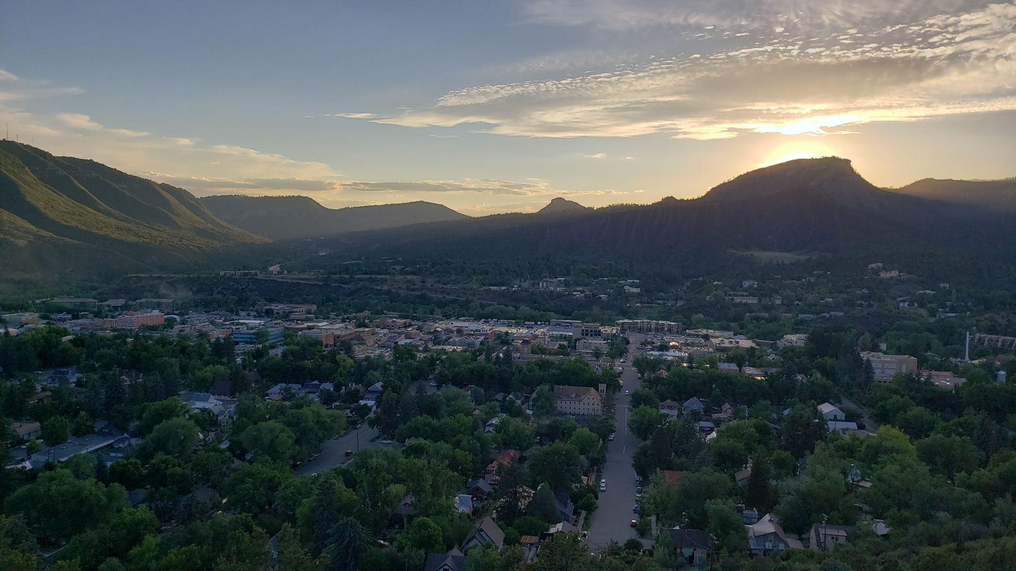 Public benches mark several spots with clear views of downtown Durango and the mountains its nestled into.