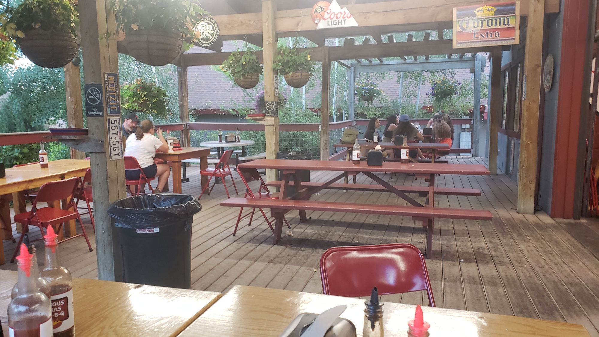 Leashed dogs are welcome on the covered porch as long as they mind their manners and don’t bother other patrons.