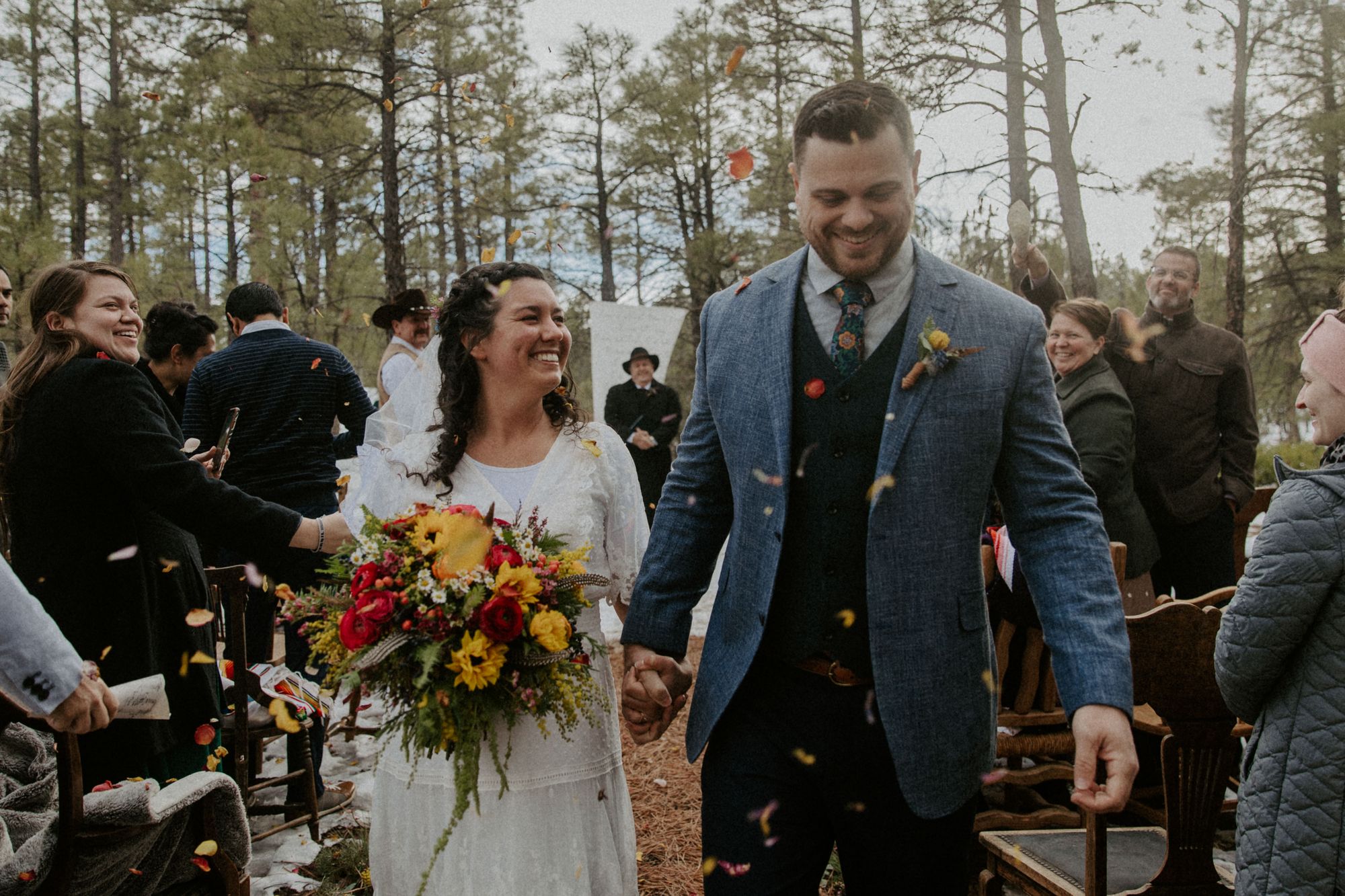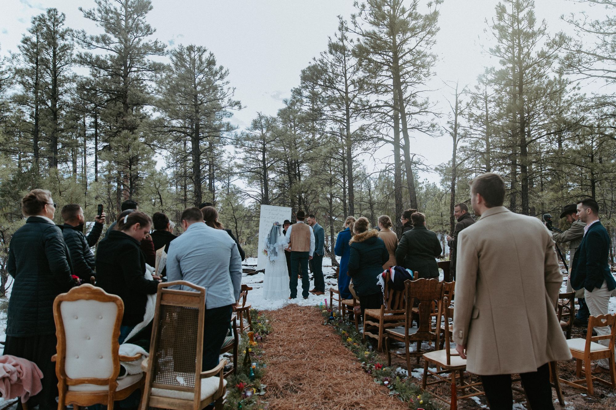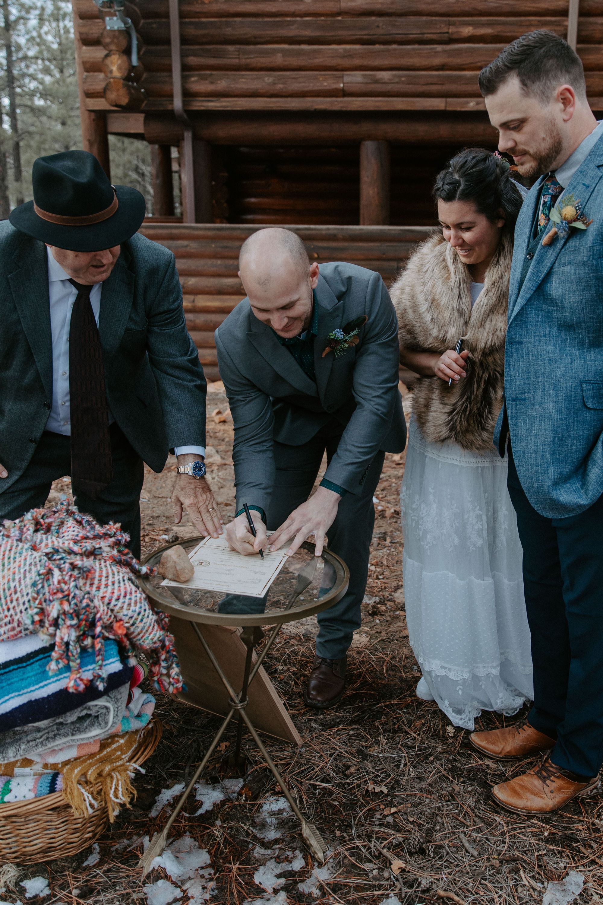 If a rustic cabin isn’t accessible or quite your vibe, there are plenty of other budget-friendly options. Consider a backyard micro wedding, a ceremony in an open field, or a park setting. Permits are inexpensive and easily obtained for most state-funded parks and can usually be found on your state’s government site. For example, before we found the Show Low cabin, Andrew and I considered obtaining a permit for private access to Red Rock State Park in Sedona, then bringing in porta-potty rentals.