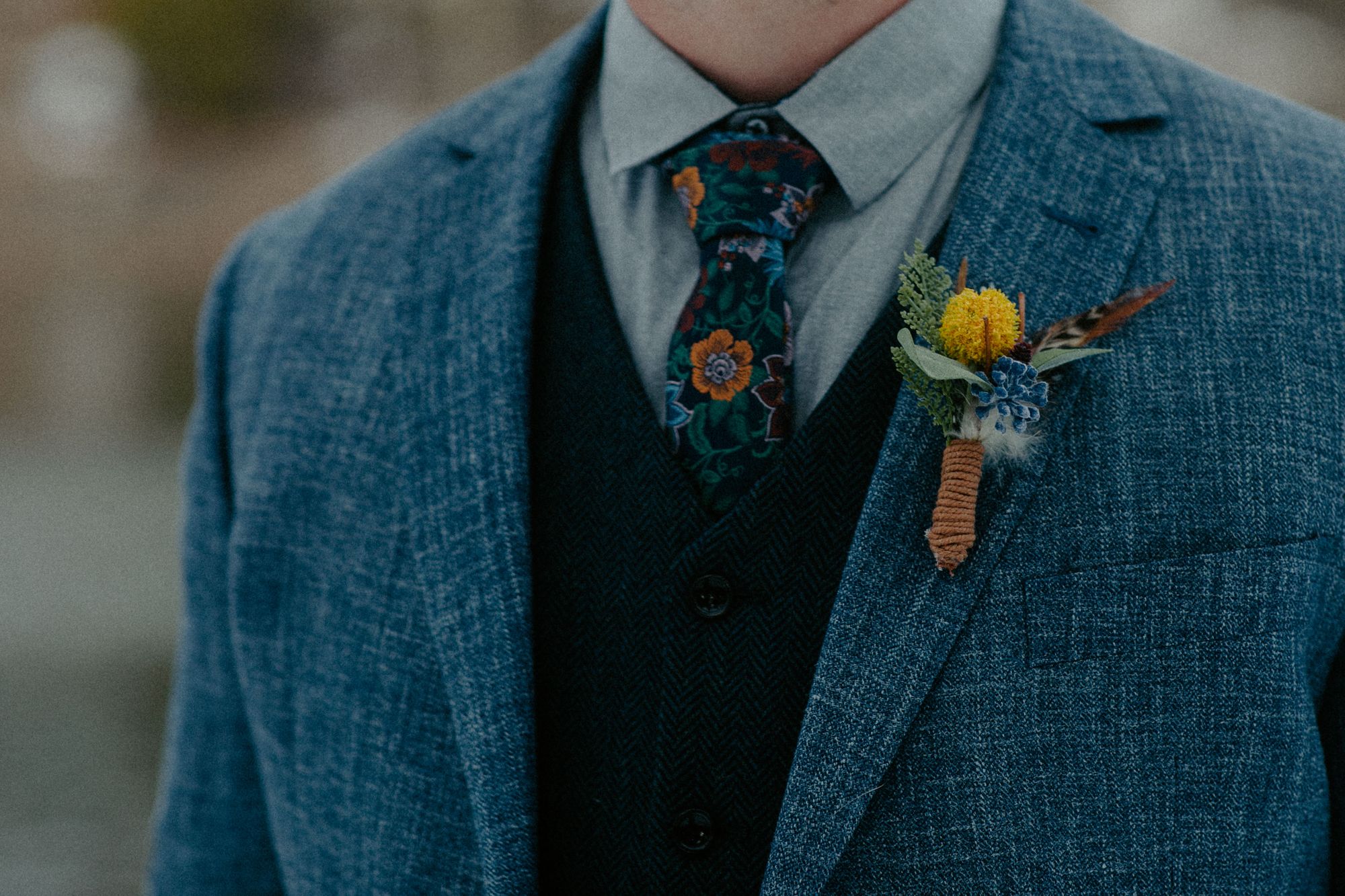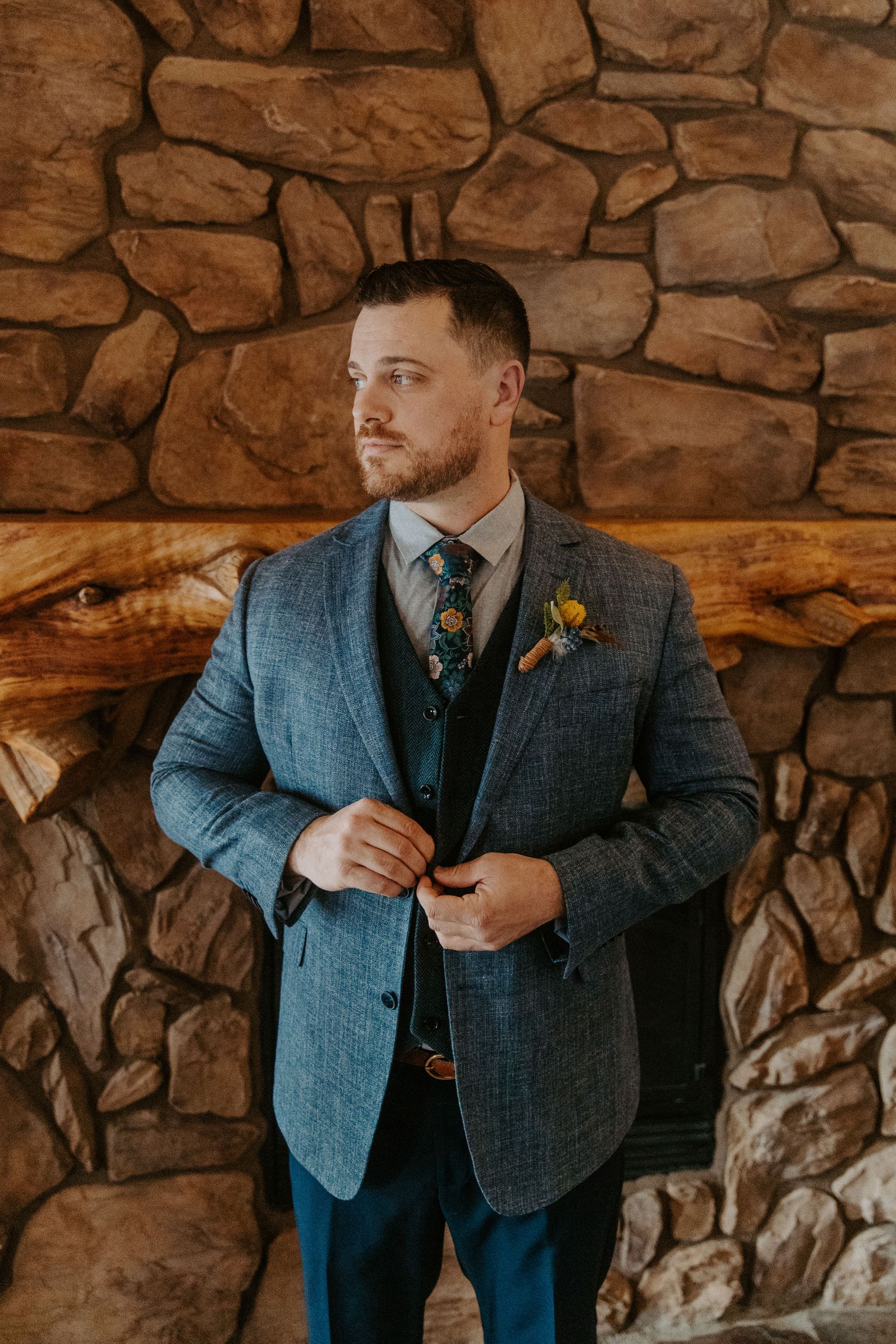 Believe it or not, piecing together a mismatched suit is not as easy as it seems! We started with his tie and used it to create the full ensemble.