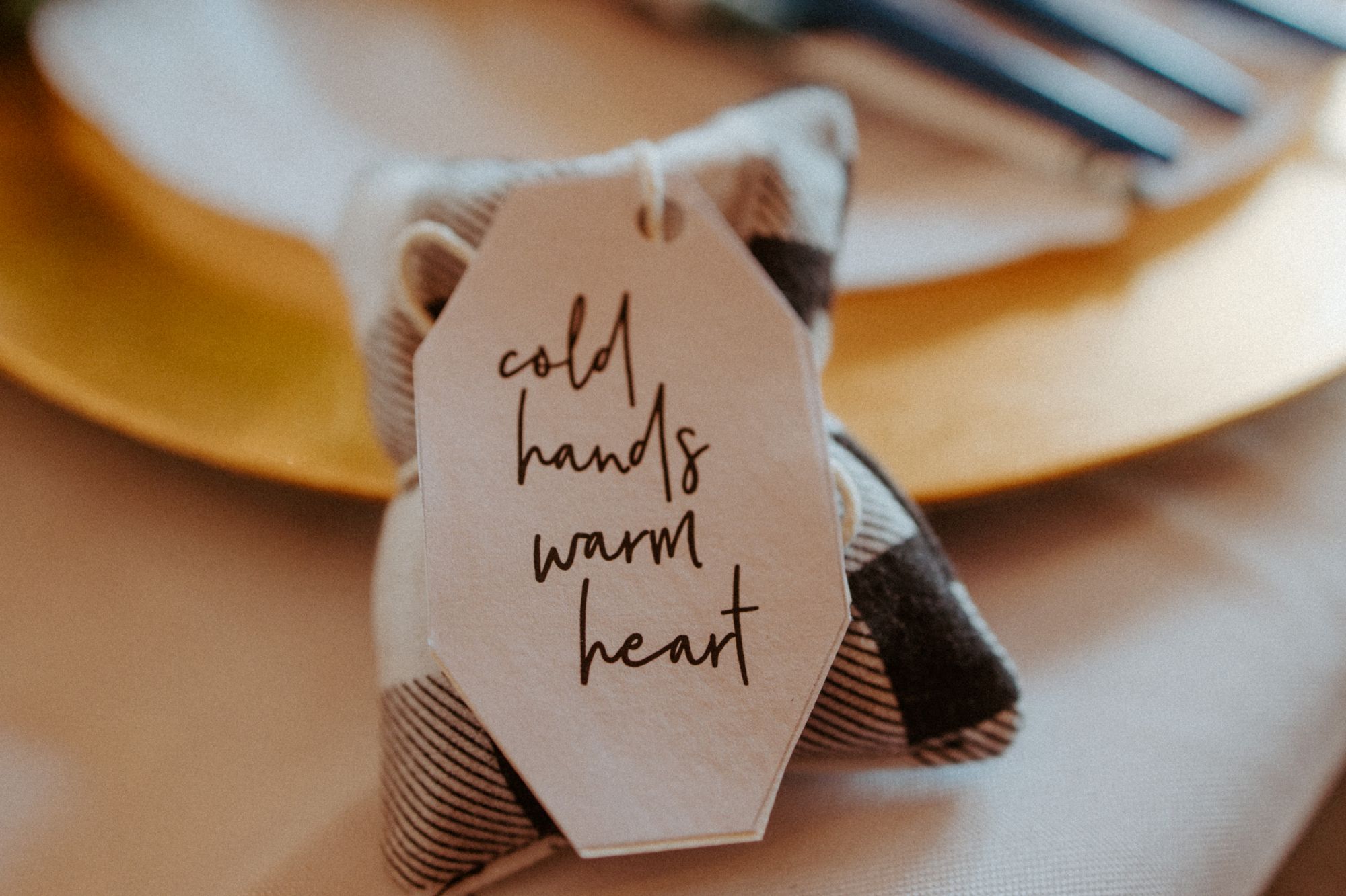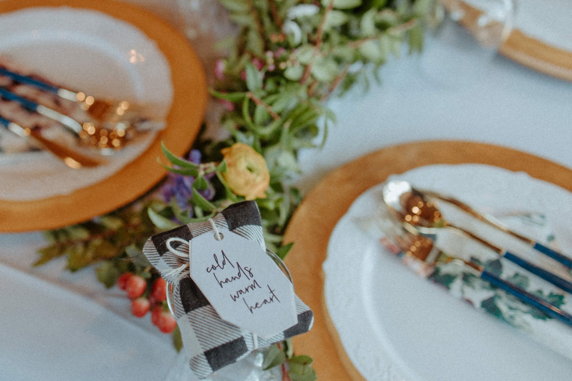 All we needed for these DIY wedding hand warmers was flannel material, flax seeds, scissors, thread, and a sewing machine. I printed off free tags and my grandma helped me tie them on with craft string. Voila!