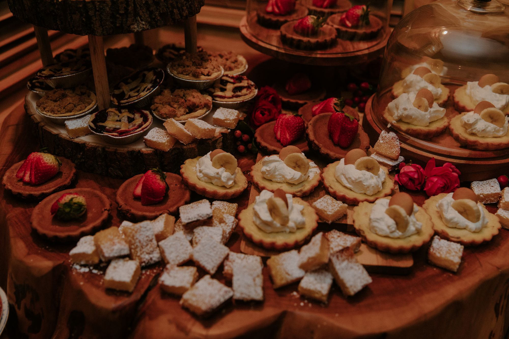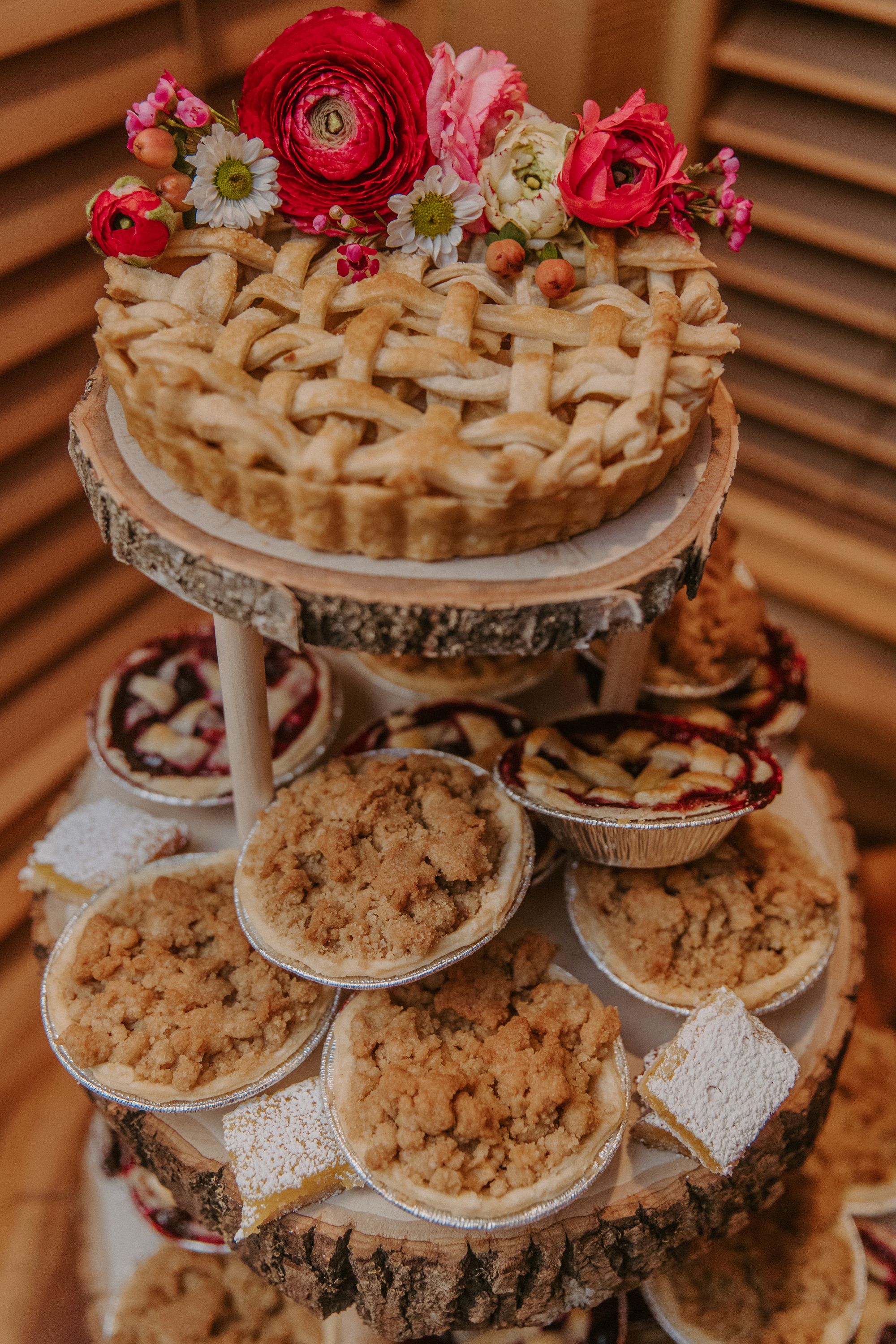 Lastly, I asked my favorite baker, my best friend and Matron of Honor, Emily, to bake our desserts. I’m not much of a cake person. So, she made two flavors of mini pies, two kinds of mini cheesecakes, lemon bars, and one medium sized pie for my husband and I to take our first bite out of!