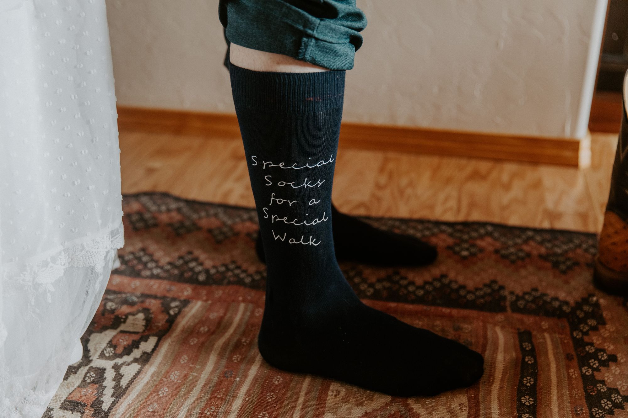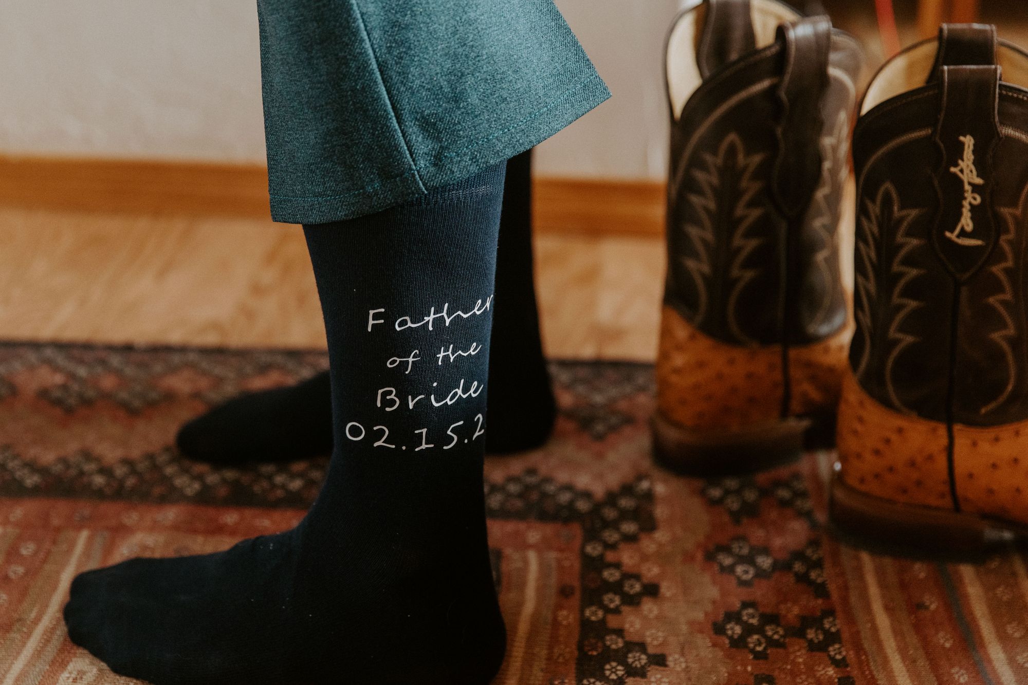 For my dad, I knew he’d likely never wear cuff links or a tie again, so I ordered some special socks he could wear with his western boots. They came in a personalized canvas pouch that made it easy for him to transport back home to Oregon where he can either stow them away as a keepsake or potentially wear again.