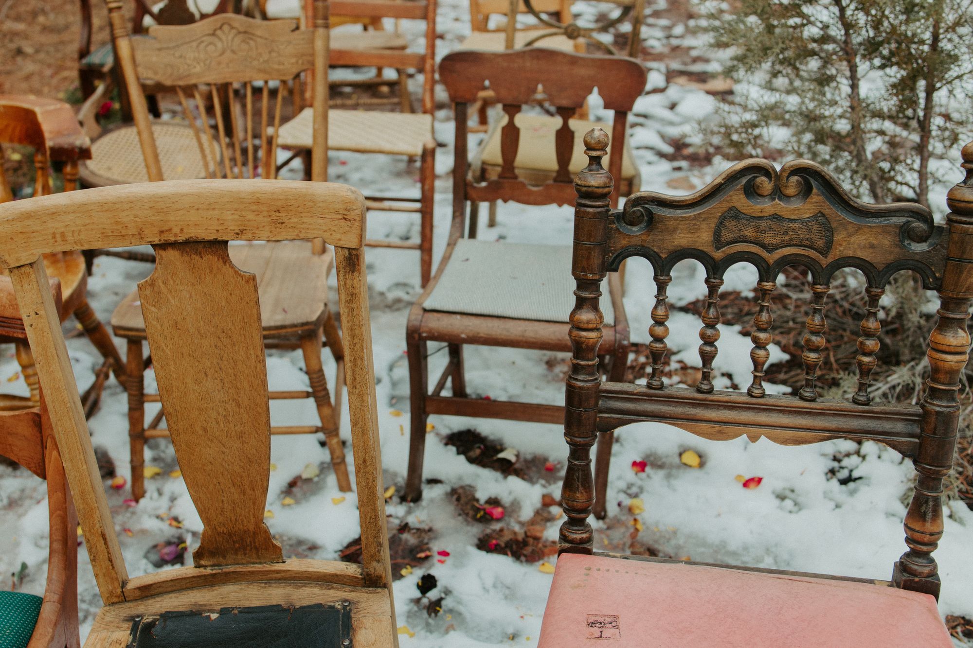 I was sold: $90 for a random selection of 30 unique chairs is totally affordable in comparison. Besides, they got double the use between the ceremony and reception!