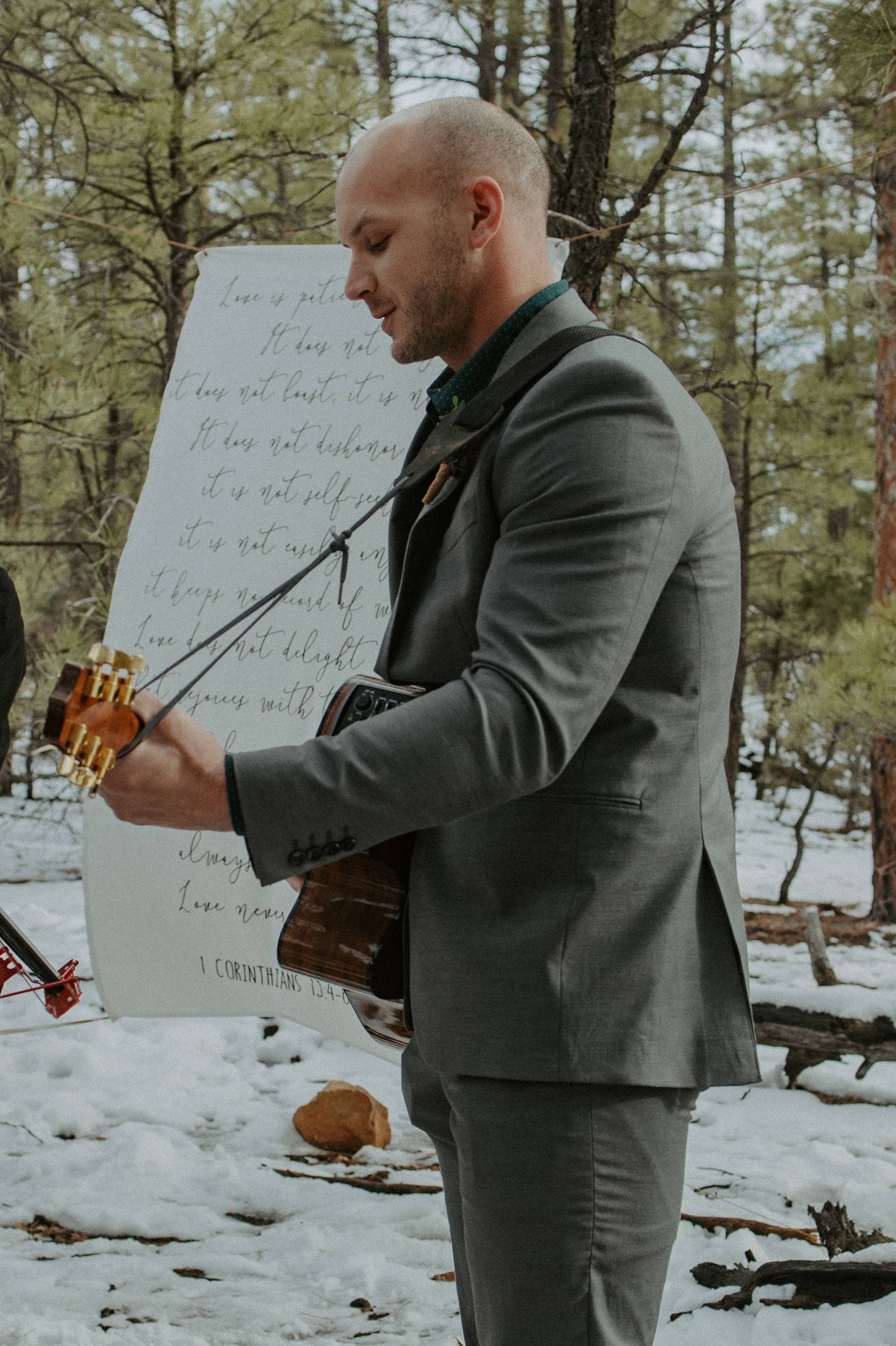 If you want to make your wedding tunes even simpler, you can ask a friend to play their guitar or other easily-transported musical instrument. As you can see in the video, Andrew’s brother and Best Man, Ryan, played and sang my entrance song (Love Never Fails by Brandon Heath). Big round of applause to my new bro!