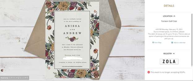 Greenvelope makes it easy to set the plus one function, track RSVPs, and even send out a survey to your guests.
