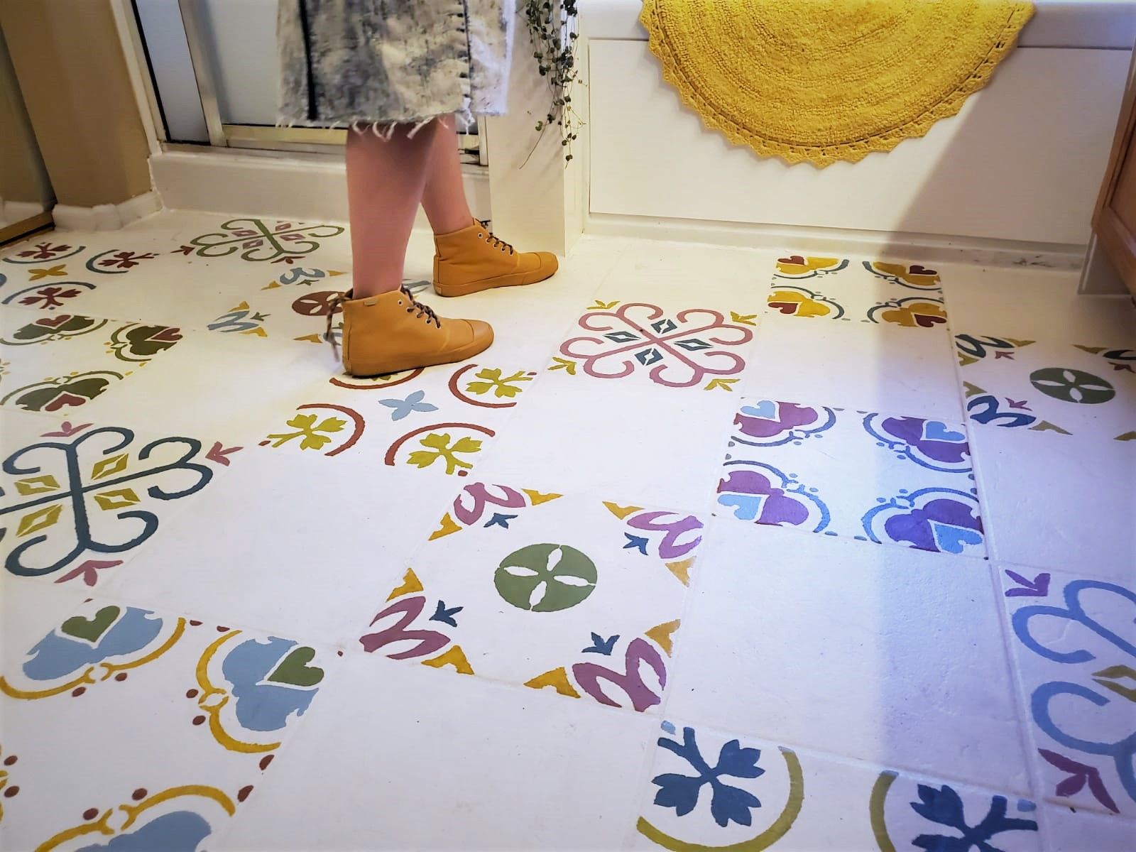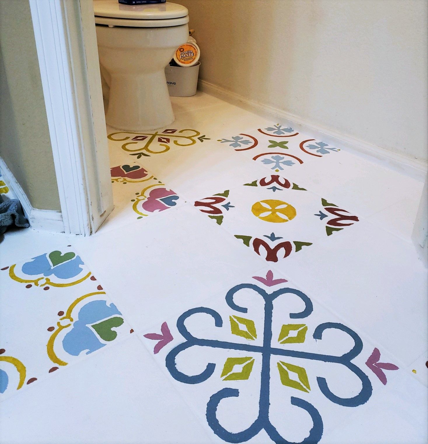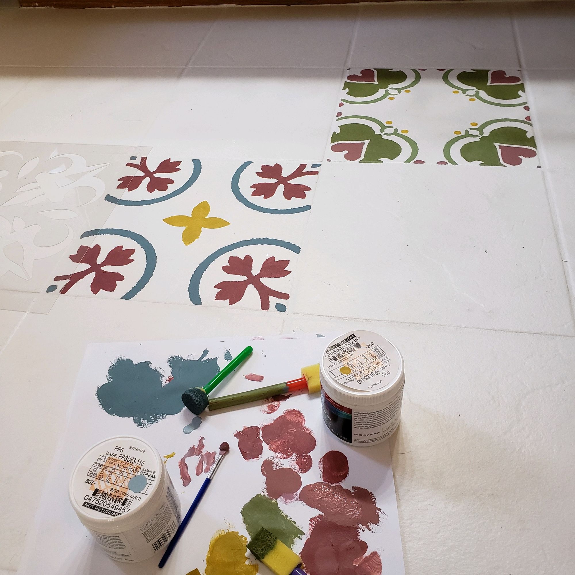 Painting and stenciling our bathroom tile floors turned out to be the perfect quarantine project. Anyone looking to update their boring, 12x12 tile floors can save money by simply painting over them with a classic stencil design. Here's how to make them last!
