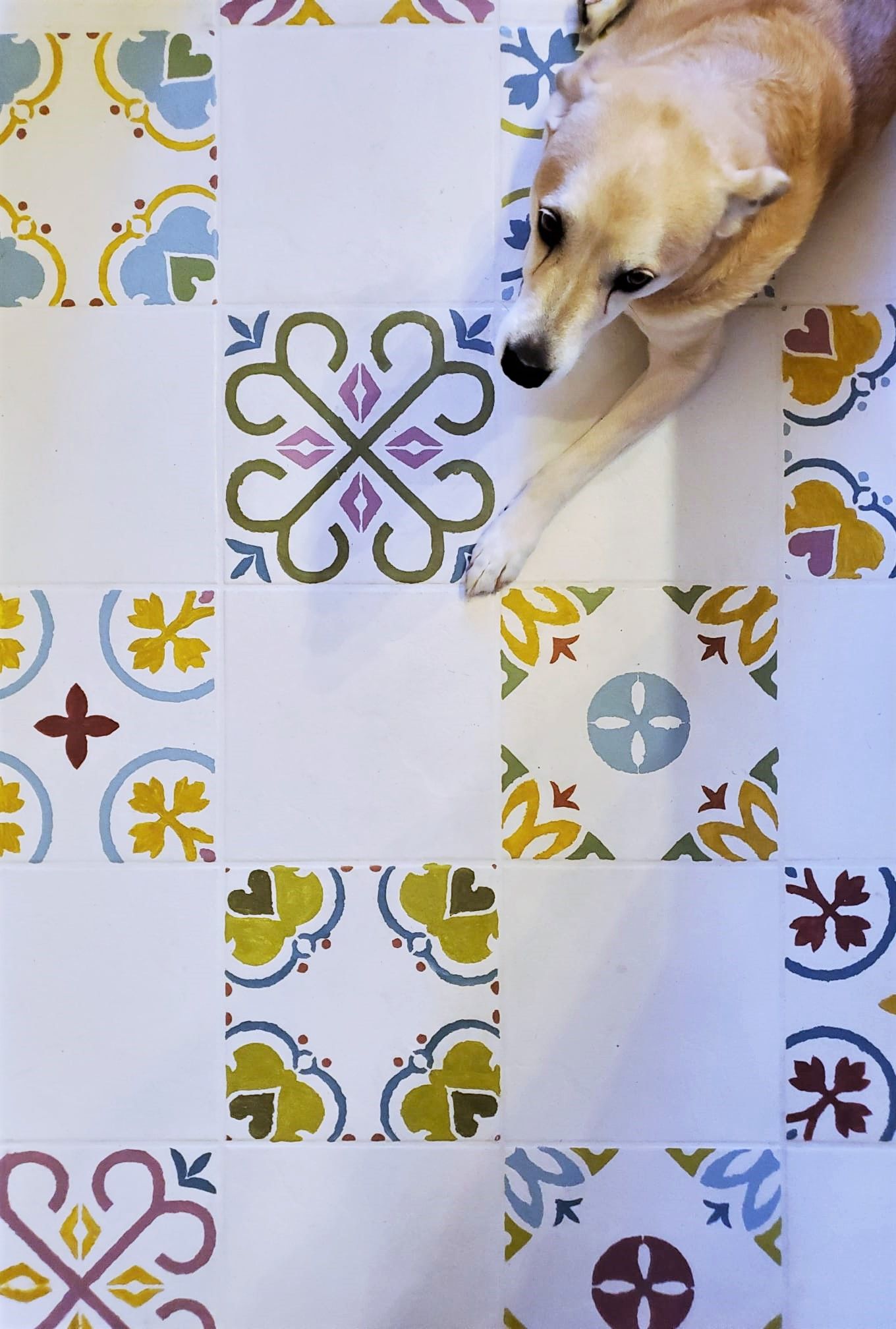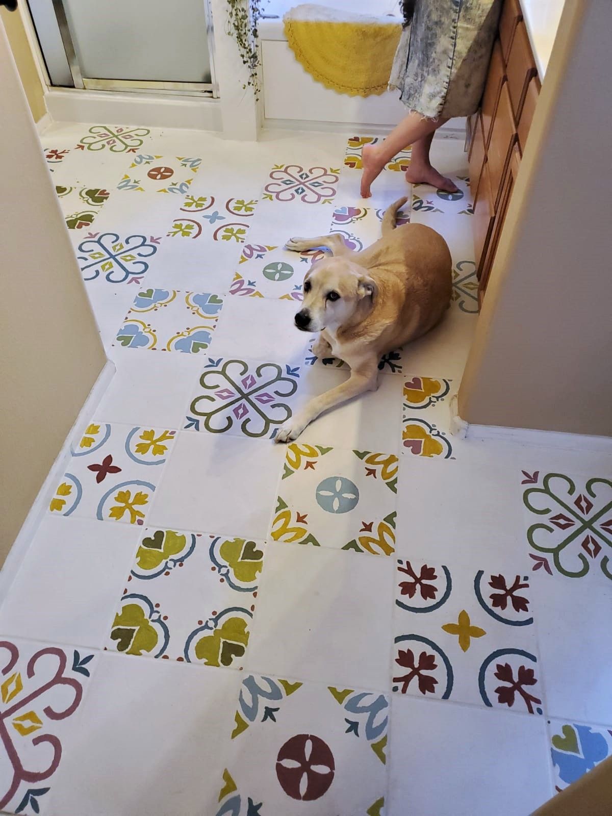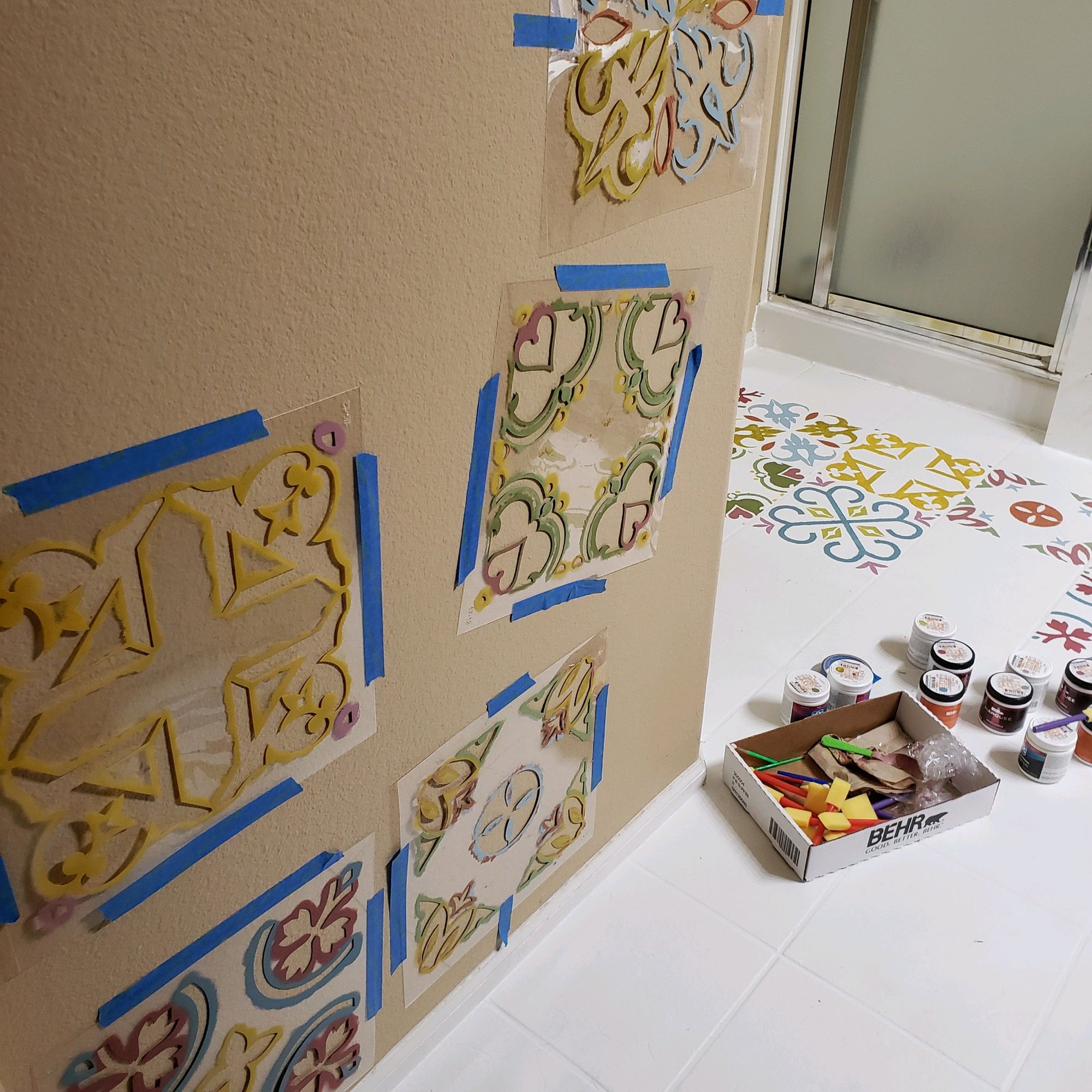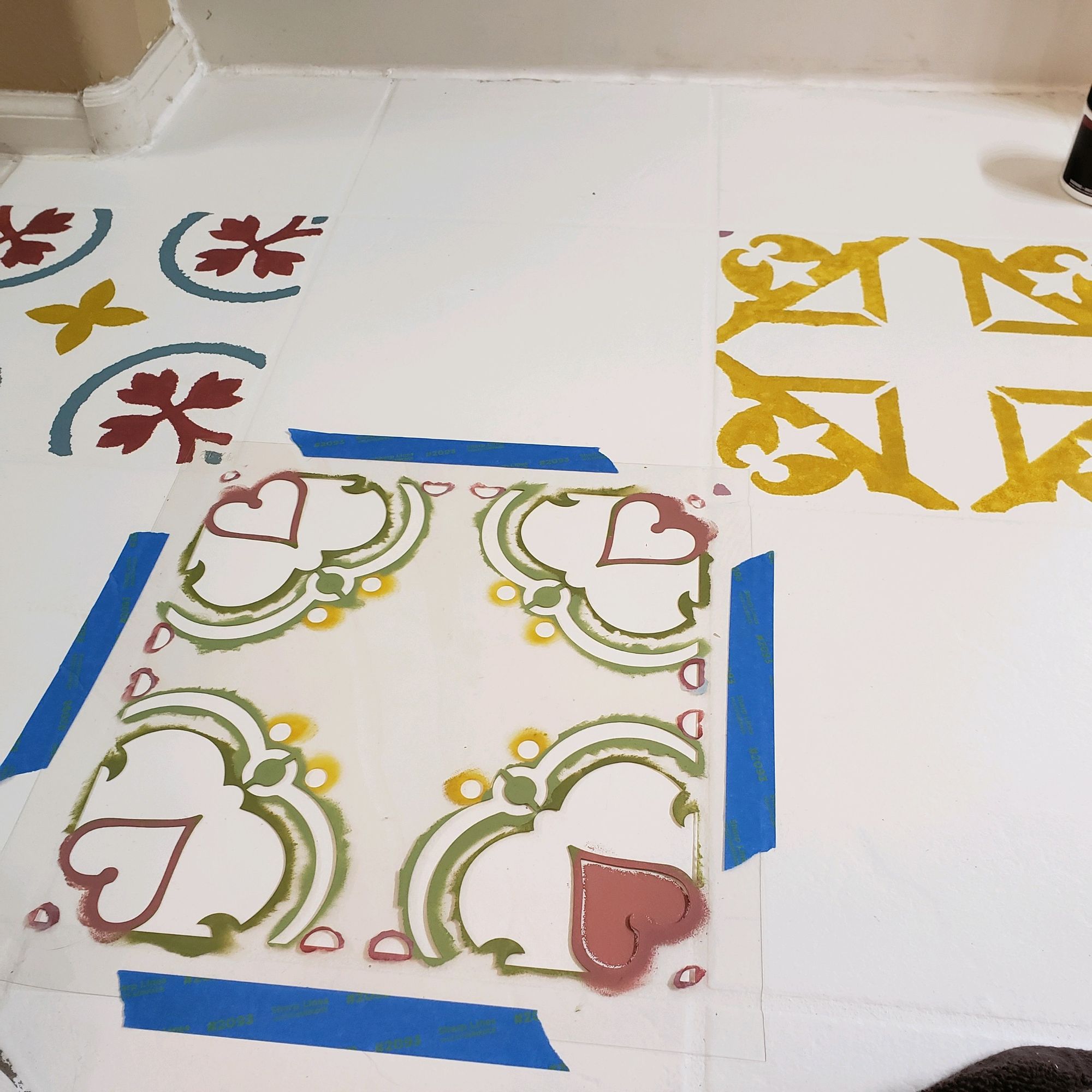 Painting and stenciling our bathroom tile floors turned out to be the perfect quarantine project. Anyone looking to update their boring, 12x12 tile floors can save money by simply painting over them with a classic stencil design. Here's how to make them last!
