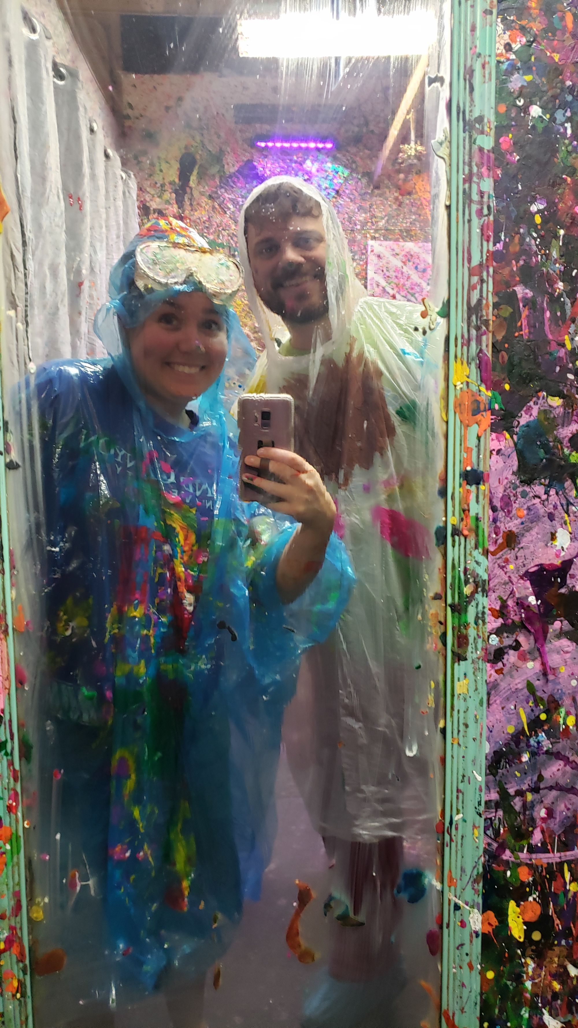 Best yet, all the paint is washable. We got as splattered as we wanted, even painted on each other’s ponchos, then we simply washed off and changed into better clothes afterwards.