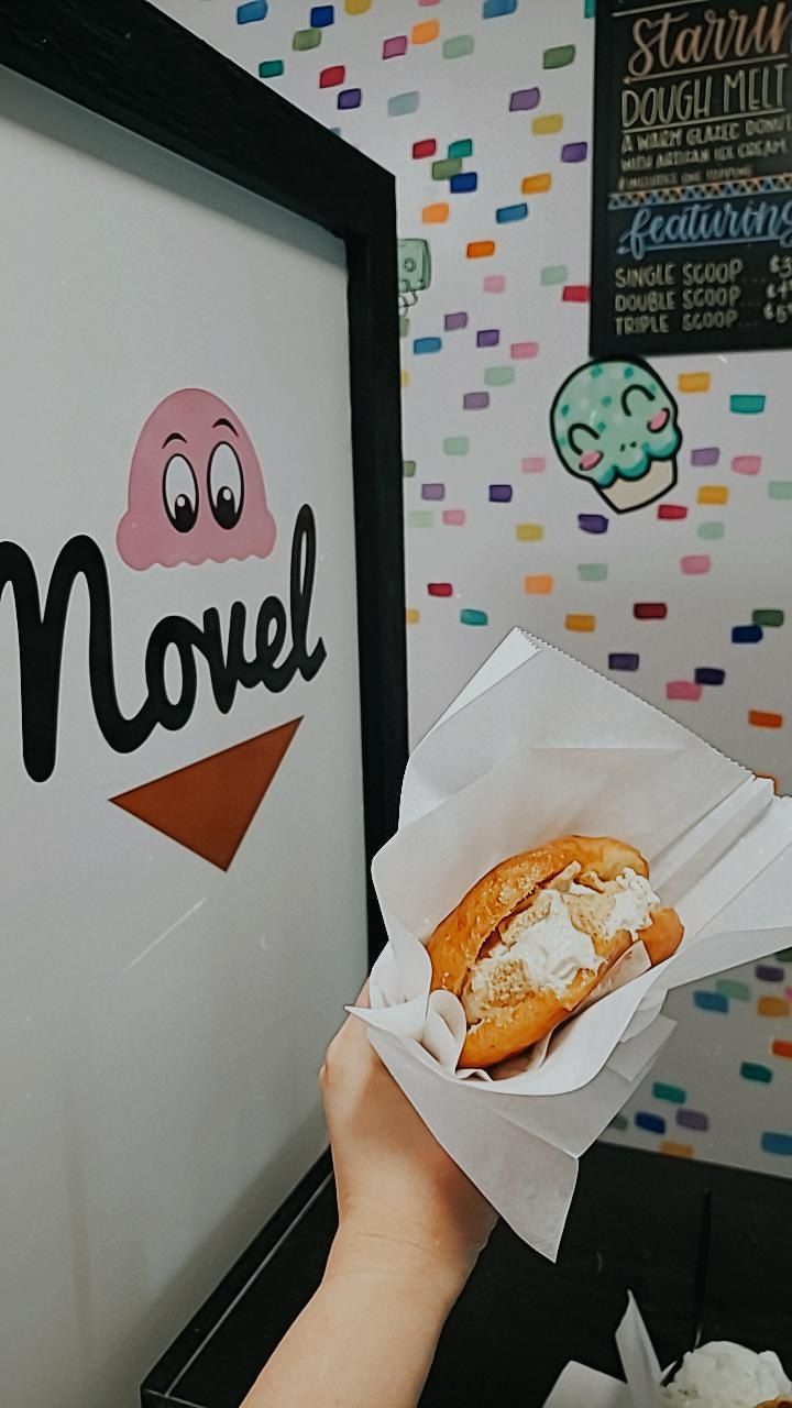 I highly recommend going all out because it’s date night after all. Whatever ice cream you choose, get it stuffed inside a glazed donut and top it with Cinnamon Toast Crunch.