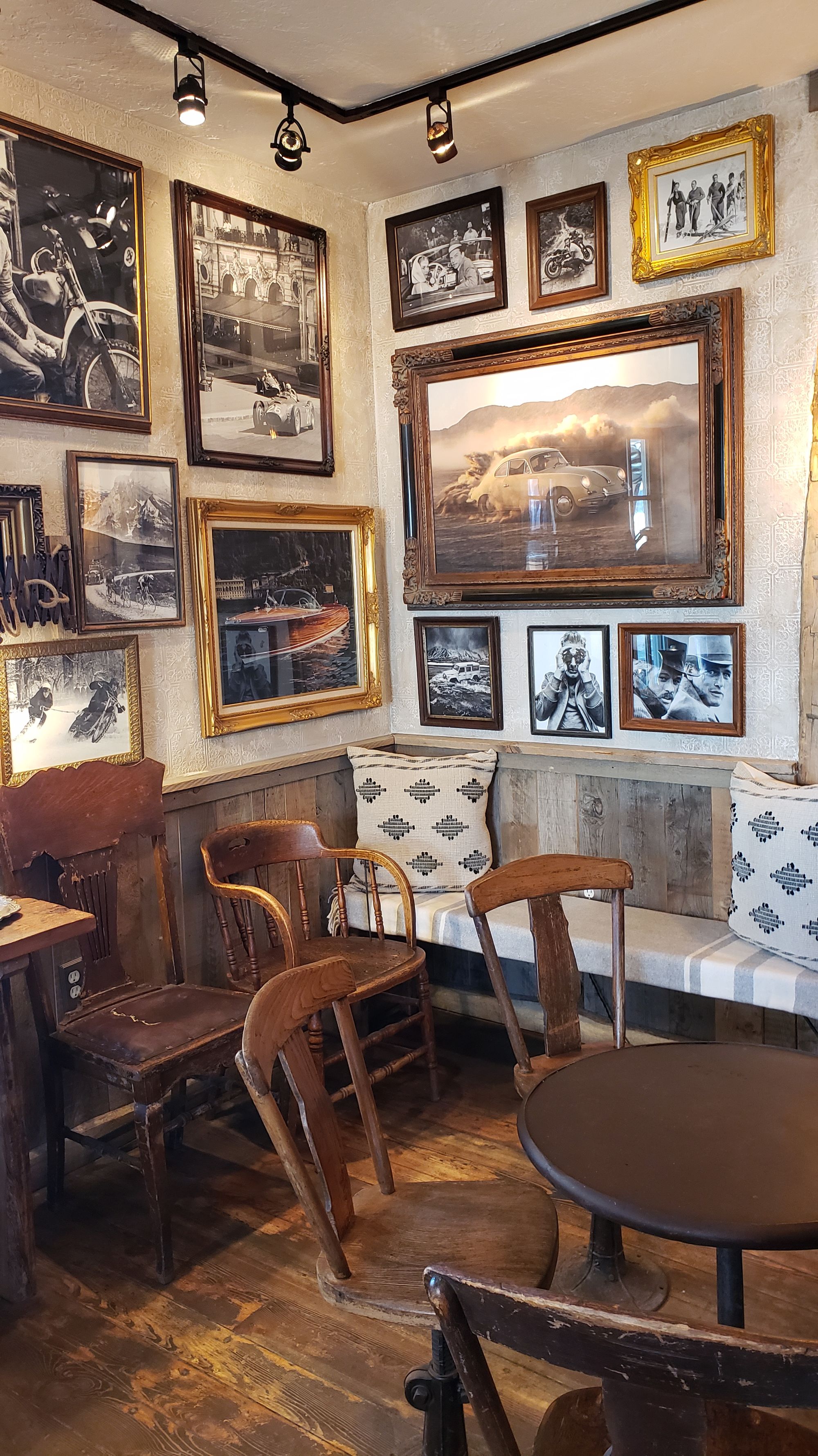 Start your day well-caffeinated at Fill'er Up coffee station. This 1930s style garage features vintage gas pumps and a Herby the Love Bug bumper. Although indoor seating isn't available due to the pandemic, the drive-thru is open and the menu offers a long list of specialty syrups and drinks made from locally roasted coffee beans.