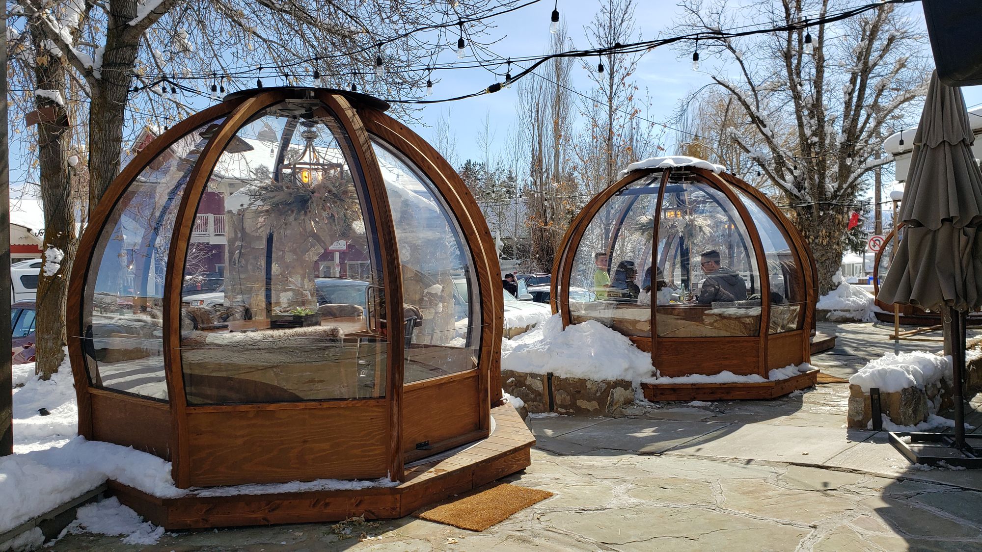 If you're up for something a tad romantic, an Alpenglobe dining experience at Cafe Galleria is worth the hype. For a $25 reservation fee, one of these adorable, ingenious enclosures gets you and up to 7 other people a cozy celebration, curated with faux fur and designer chandeliers. Not to mention, the restaurant's wood-fired pizzas are top-notch and totally affordable! The wait staff was incredibly kind to us as honeymooners and went out of their way to make us feel special. Although dinner time would be stunning, we went during daytime which made for better pictures! Keep in mind, these fill up fast and might require a reservation weeks in advance.