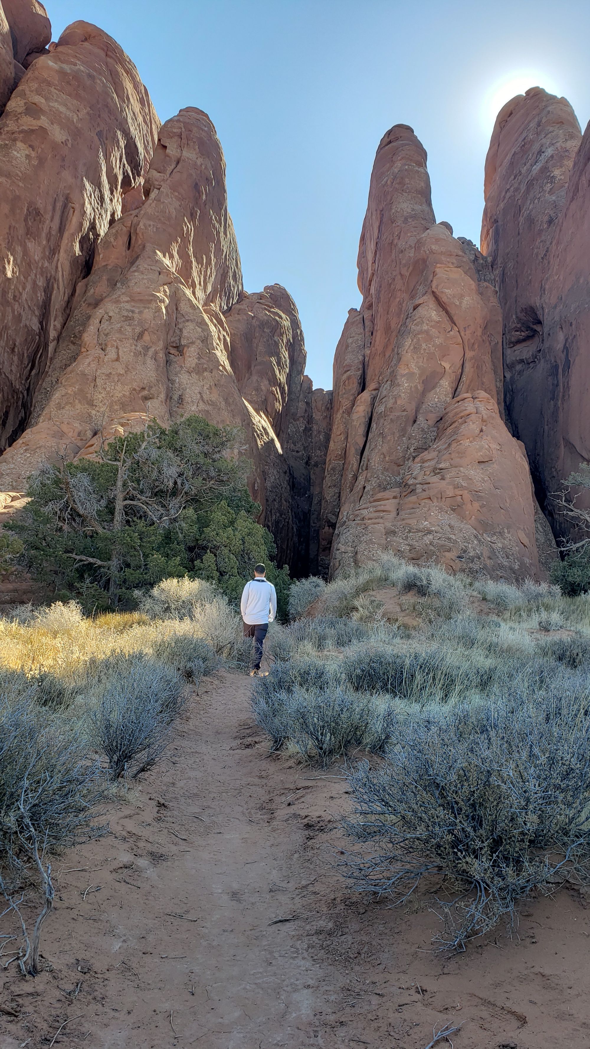 With only one main road in and out, strategize your visit by starting all the way in at Devil’s Garden then work your way out. This trailhead is the longest in the park (8 miles), but we were satisfied seeing only Pine Tree and Tunnel Arch.