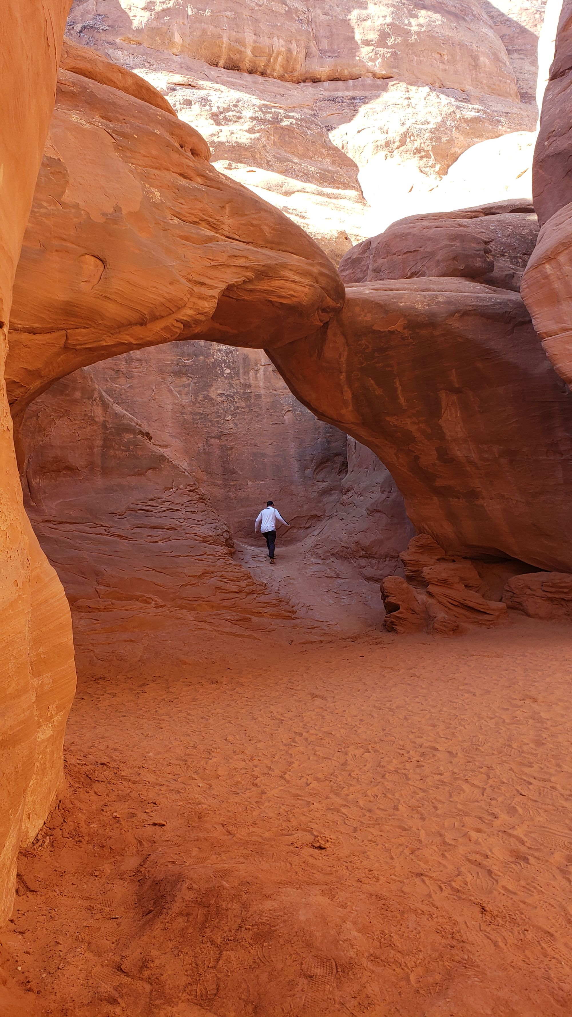 Next, take a walk through Sand Dune Arch – an easy one for anybody and mostly on sand.