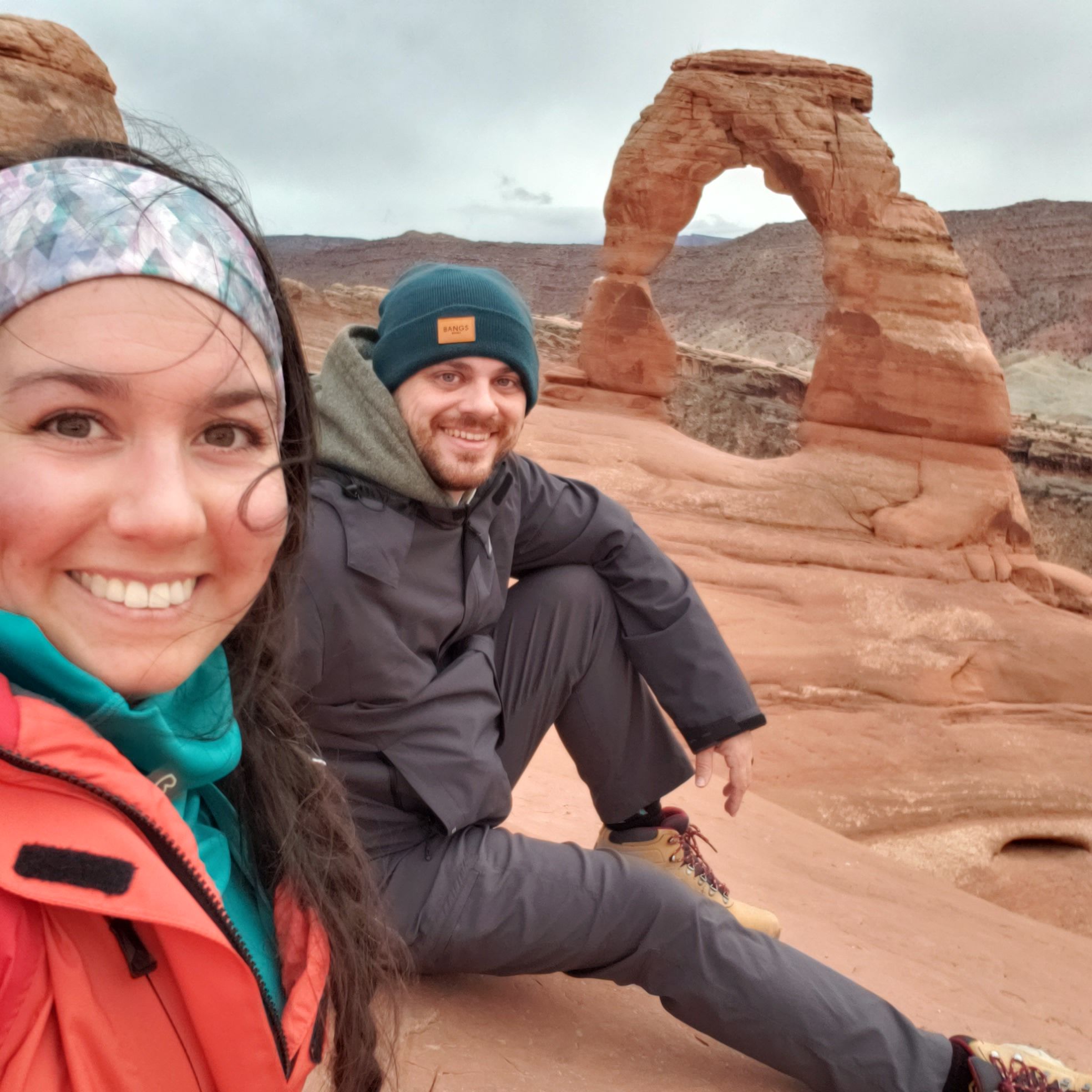 We left early afternoon because we were hungry but also because pictures are basically no good at that hour. When we returned around 4, storm clouds had rolled in and the wind chill left our faces numb while we climbed the 3 miles roundtrip to Delicate Arch. This hike is shorter but a thigh-burner for sure! The pictures don’t really do it justice, but the trail up to the top has some pretty steep drop-offs and no railing. Remember, sunrise or sunset hours give the best lighting, so try to time this hike (and really anything) with either one.
