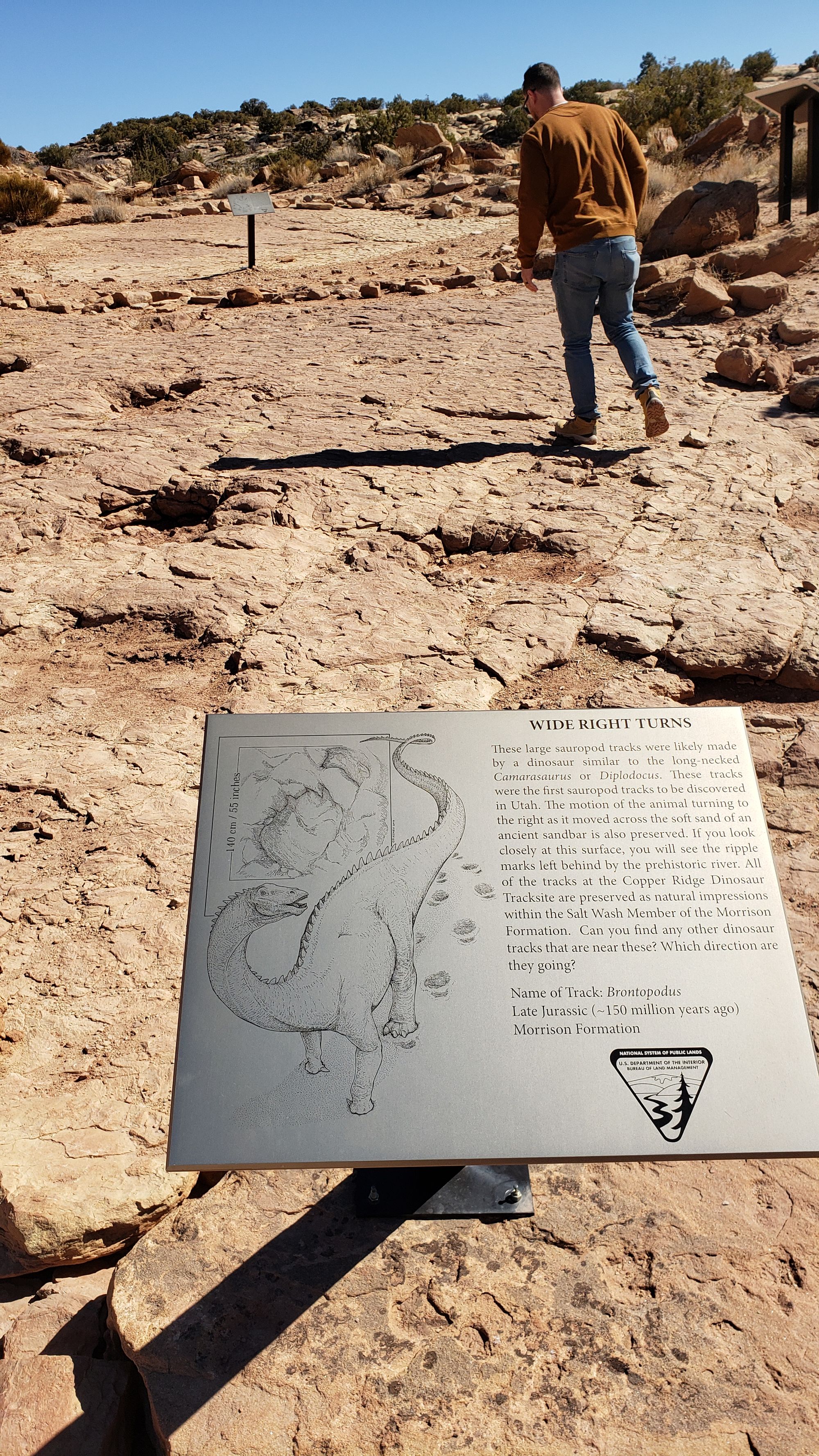 Of all things, my husband was probably most excited about this stop. When you’re headed north on Hwy 191 back toward I-70, you’ll take a right onto a gravel road (BLM 143) for a few miles until a parking area. Just a short walk up the slope are signs indicating prehistoric dinosaur footprints that are still visible today. This isn’t a huge attraction, but it’s still pretty cool to see something like this firsthand! There aren’t any bathrooms here, but it’s a great quick stop for a family with jittery-limbed kids.
