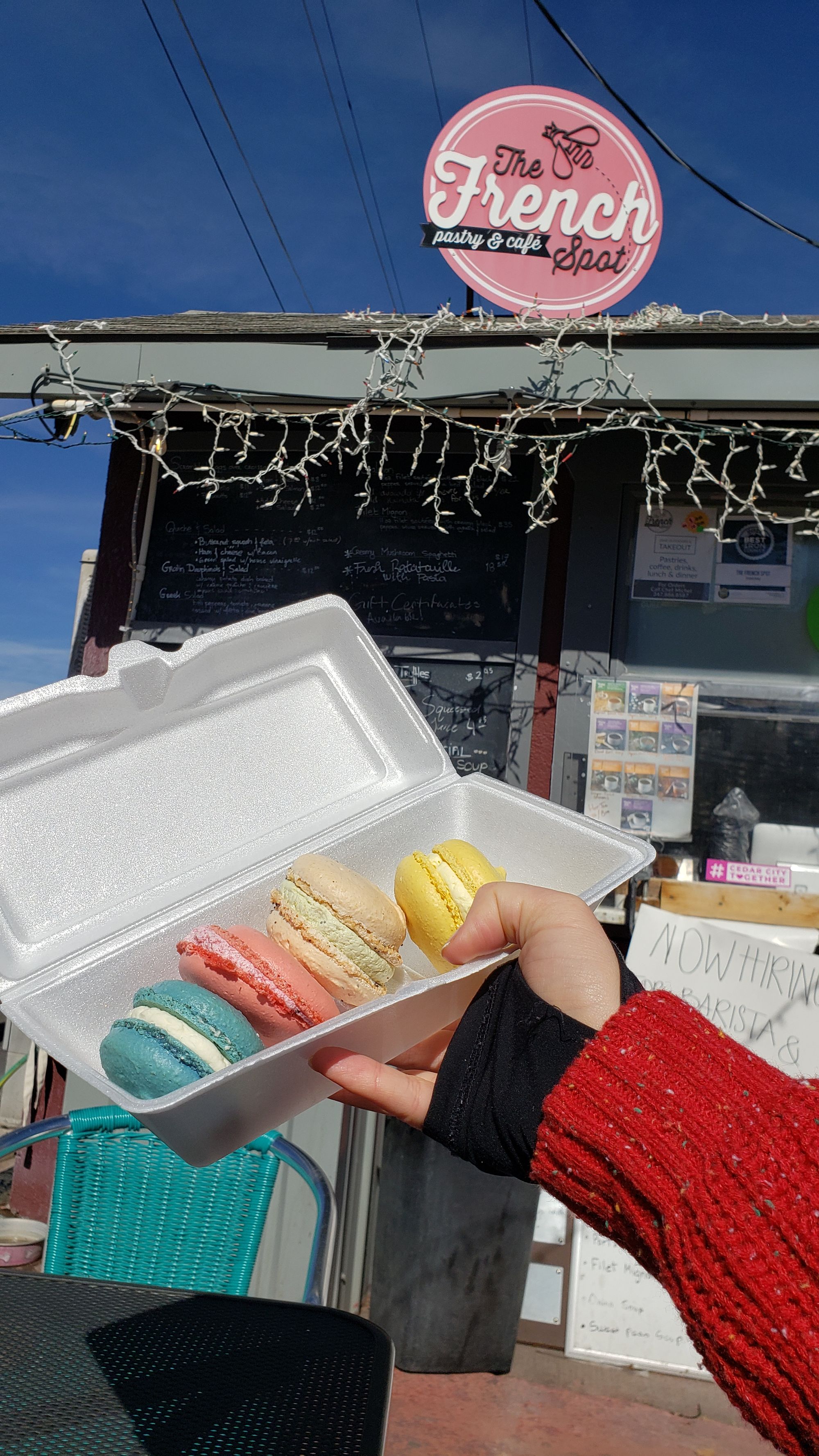 To top off our meal with a treat, we stopped by The French Spot to order a crepe and macarons to go. I love macarons, but my usual complaints are that they are too small for the expense and often lack flavor. These cookies were BIG. Enough to share (if you’re feeling nice), and full of flavor!
