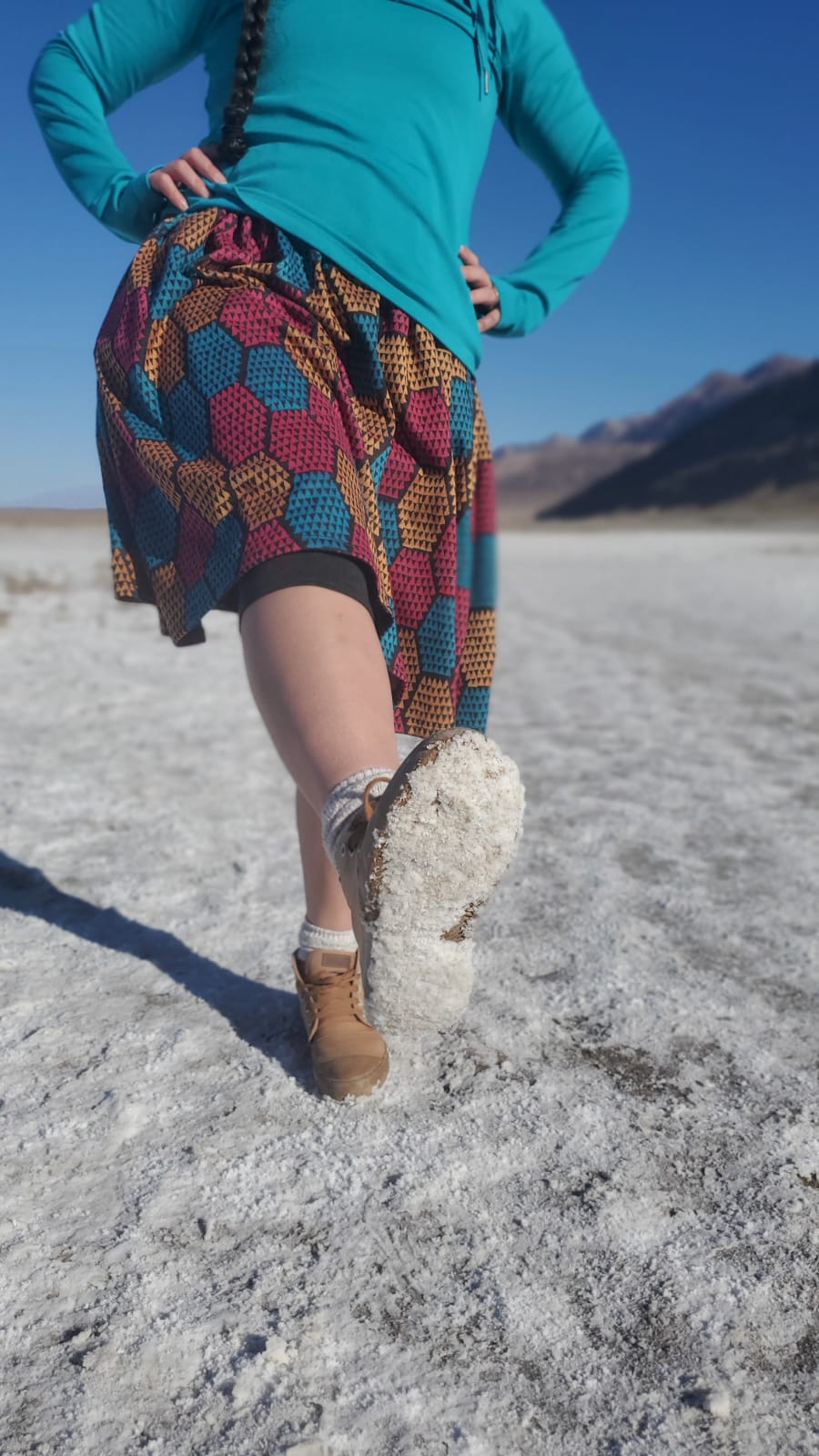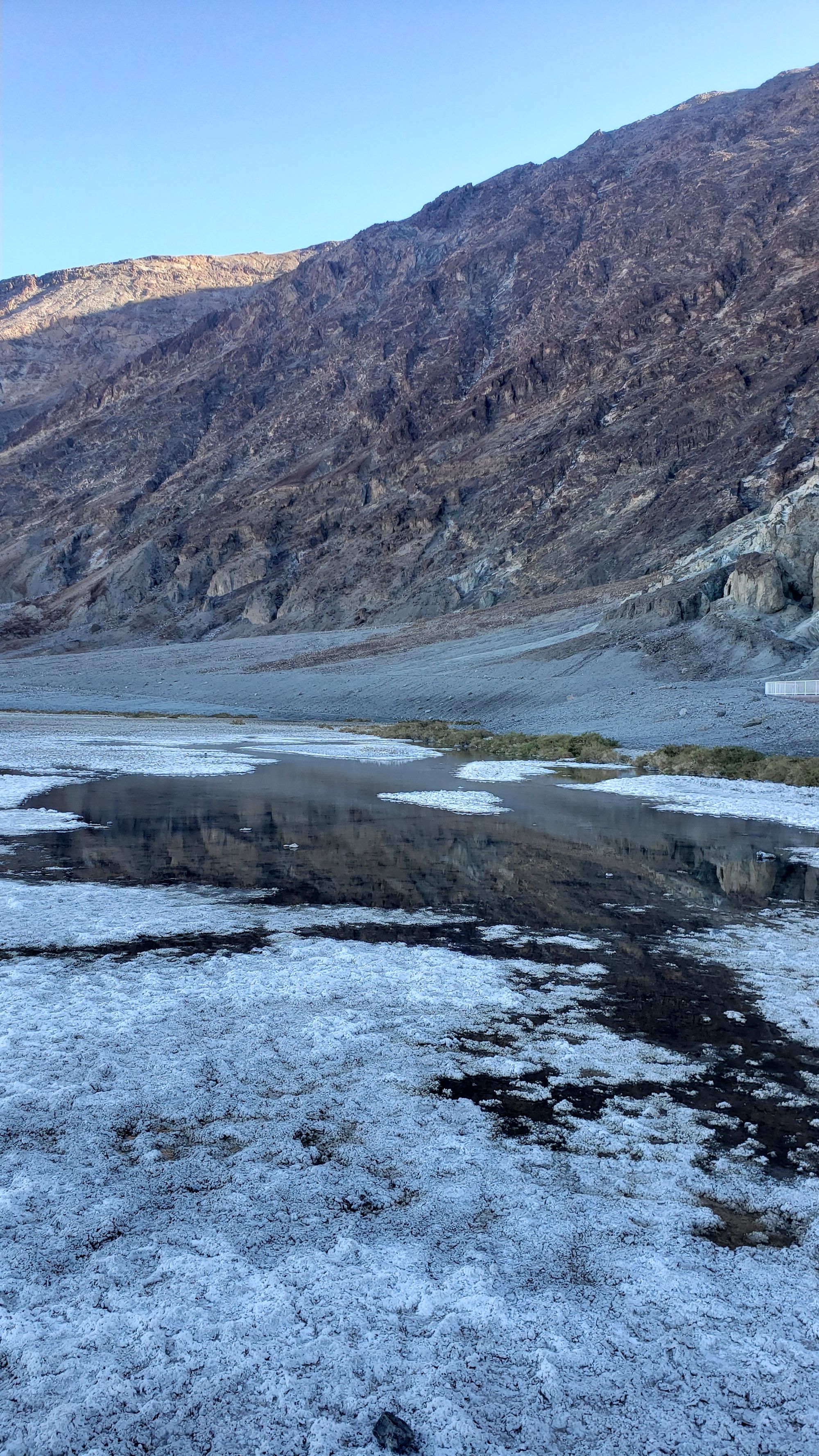 The next morning, before heading to Las Vegas, we drove to the lowest point in North America, feasting on snacks for breakfast. Like everything in Death Valley, Badwater Basin's salt flats seem never-ending. We walked, and walked, and still the salt field continued like a mirage.