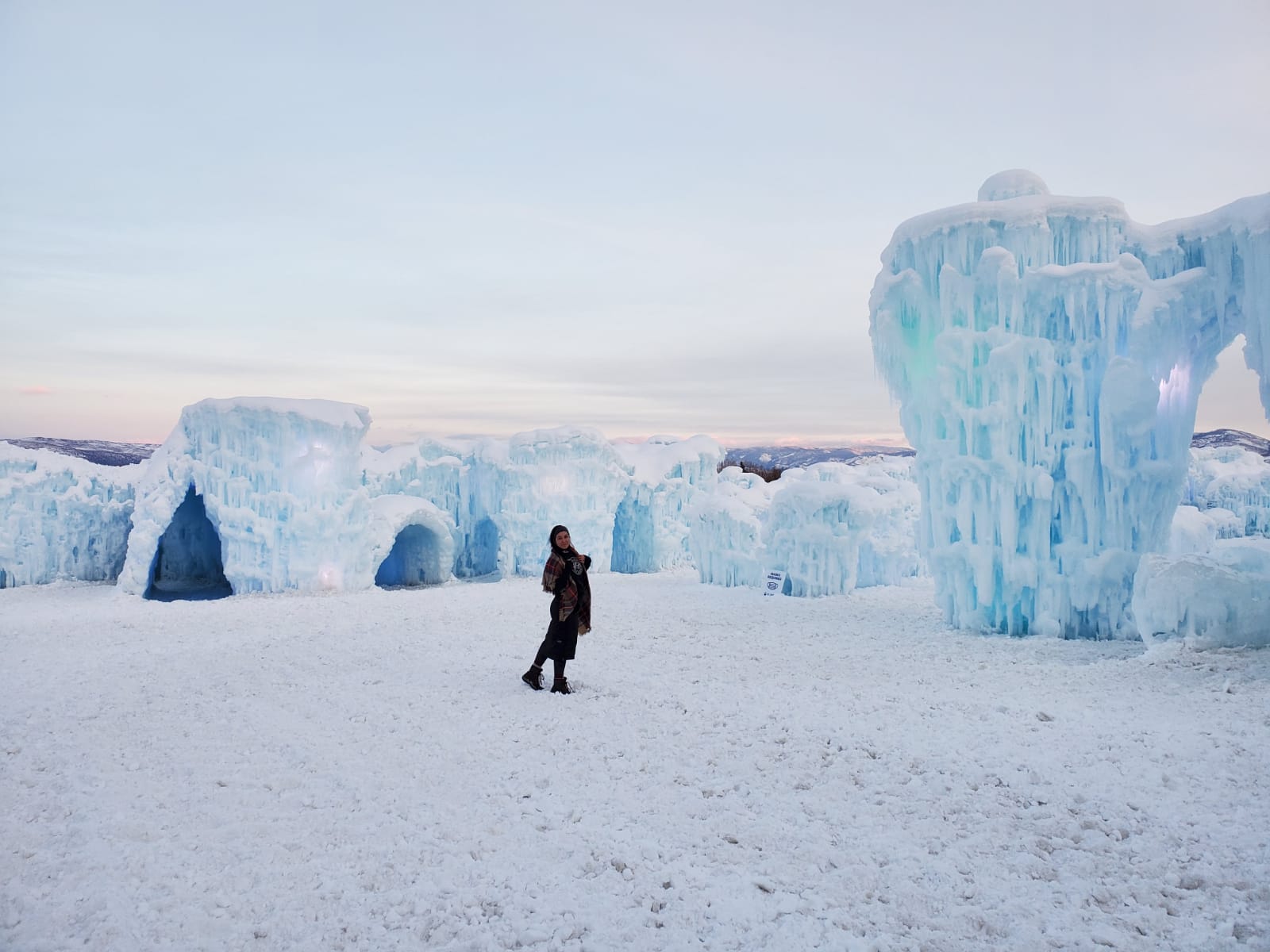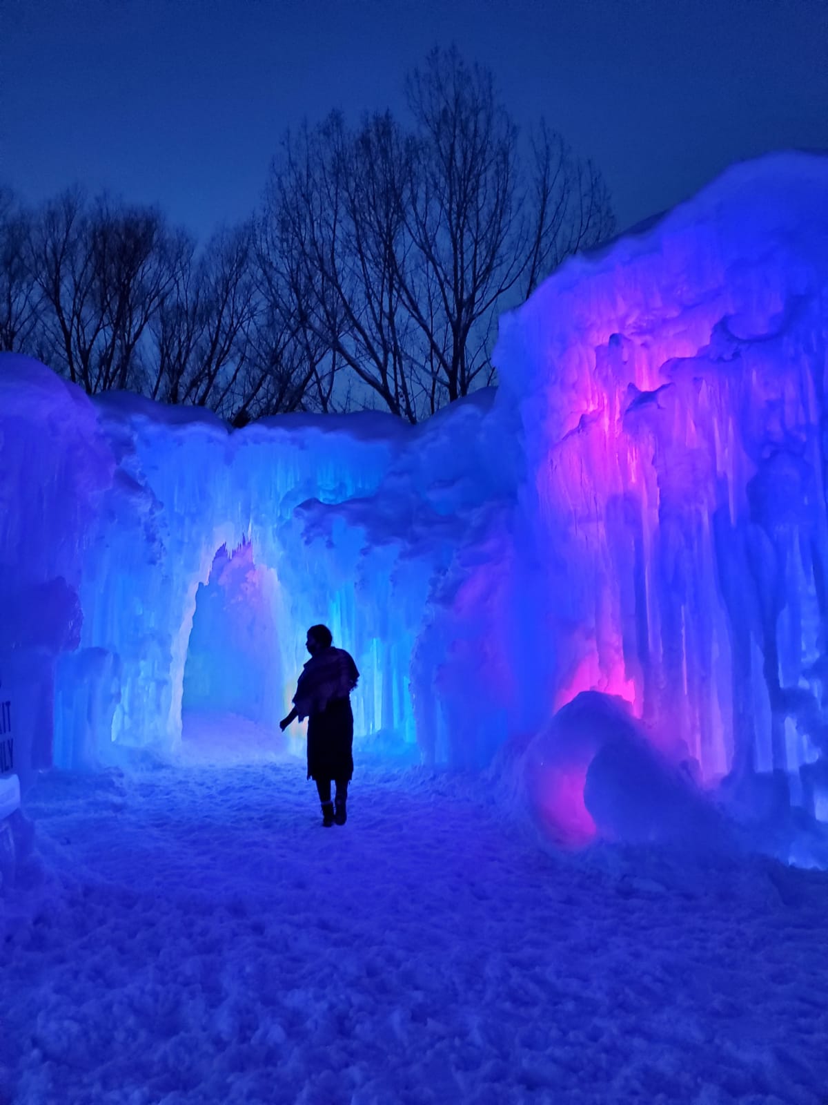 If you're an influencer, book the first time slot and show up 10-15 minutes early. We were the first in line ahead of a pack of children and we glimpsed the ice sculptures uninhibited, basking in the waning rays of twilight. Pure magic. It was also pure chill--as in so cold my phone actually turned itself off! This is one time you'll be glad to wear a mask to keep your nose warm. Come layered but prepared to ride the psychedelic ice slide at least once. You'll regret it if you don't!